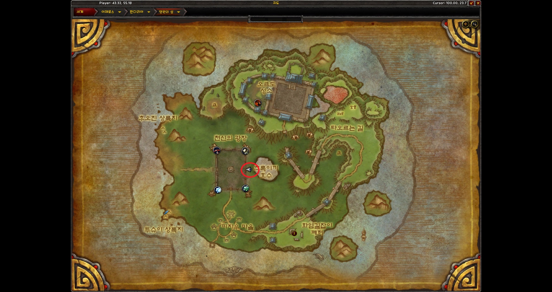 판다리아의 안개 시간 여행 상인(NPC 운무사 시아)과 위치