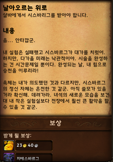 시스바르그를 얻기 위해서는 우선 필요한 퀘스트 아이템이 있습니다